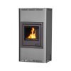 Krbové kachle s výmenníkom Haas+Sohn NIVALA s výkonom až 16 kW (11,1 kW do vody/5 kW do vzduchu) v antracitovej farbe so sivým obkladom (pri kúrení s drevenými polenami).