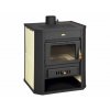 Krbové kachle s výmenníkom Haas+Sohn NIVALA s výkonom až 16 kW (11,1 kW do vody/5 kW do vzduchu) v čiernej farbe s béžovým obkladom (pri kúrení drevenými polenami).