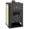 Krbové kachle s výmenníkom Haas+Sohn ANDRUS s výkonom až 16 kW (11,1 kW do vody/5 kW do vzduchu) v čiernej farbe s béžovým obkladom.