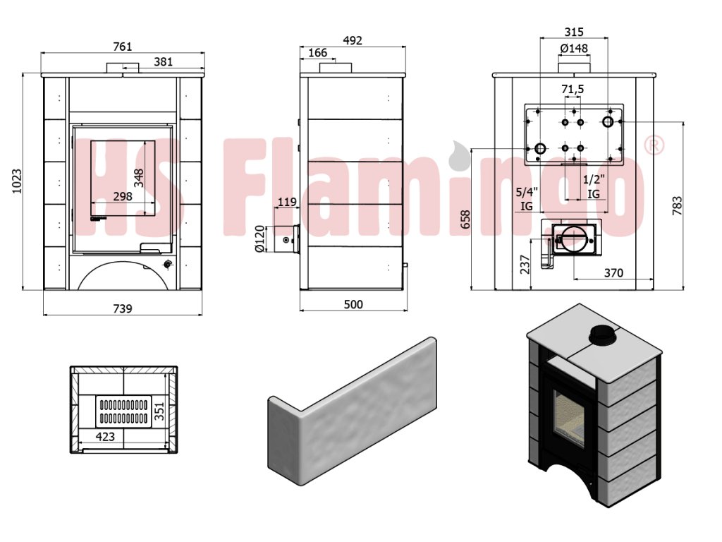 | Materiál: | oceľový plech 3 a 5 mm, šamot |
