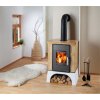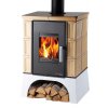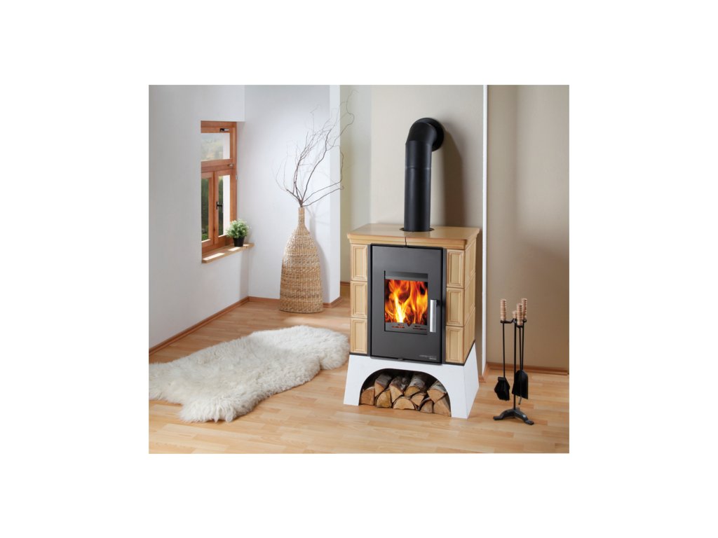 Uchvátia vás svojím luxusným prevedením a väčšími sklenenými dvierkami zo špeciálnej sklo-keramickej hmoty s vysokou tepelnou odolnosťou, ktoré zaručujú nádherný zážitok z pohľadu na plápolajúci oheň. Pod presklenou časťou kachlí nájdete priestor určený pre skladovanie dreva, či drevených brikiet.