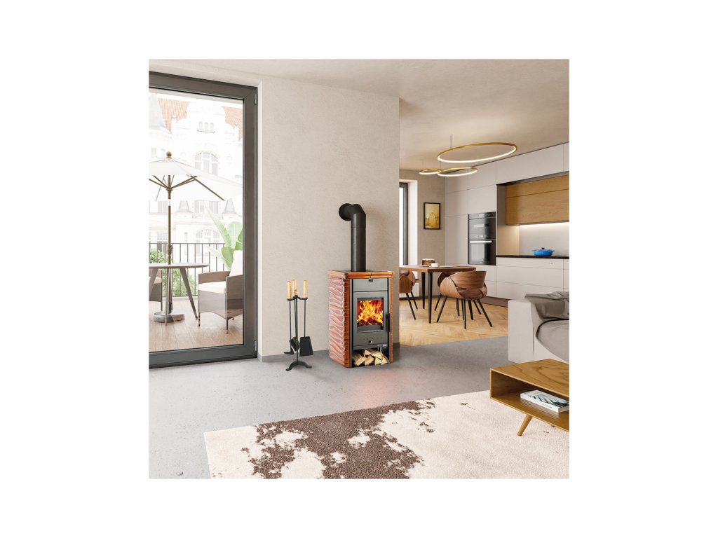 Pohľad na plápolajúci oheň dopĺňa elegantné presklenie dvierok, ktoré vytvára čarovnú atmosféru a zároveň umožňuje dokonalý prehľad o plameni. Výrobca odporúča ako palivo kvalitné suché drevo alebo drevené brikety, čím sa dosahuje efektívne spaľovanie aj dlhodobý tepelný výkon.