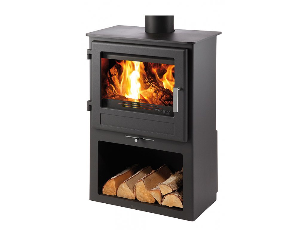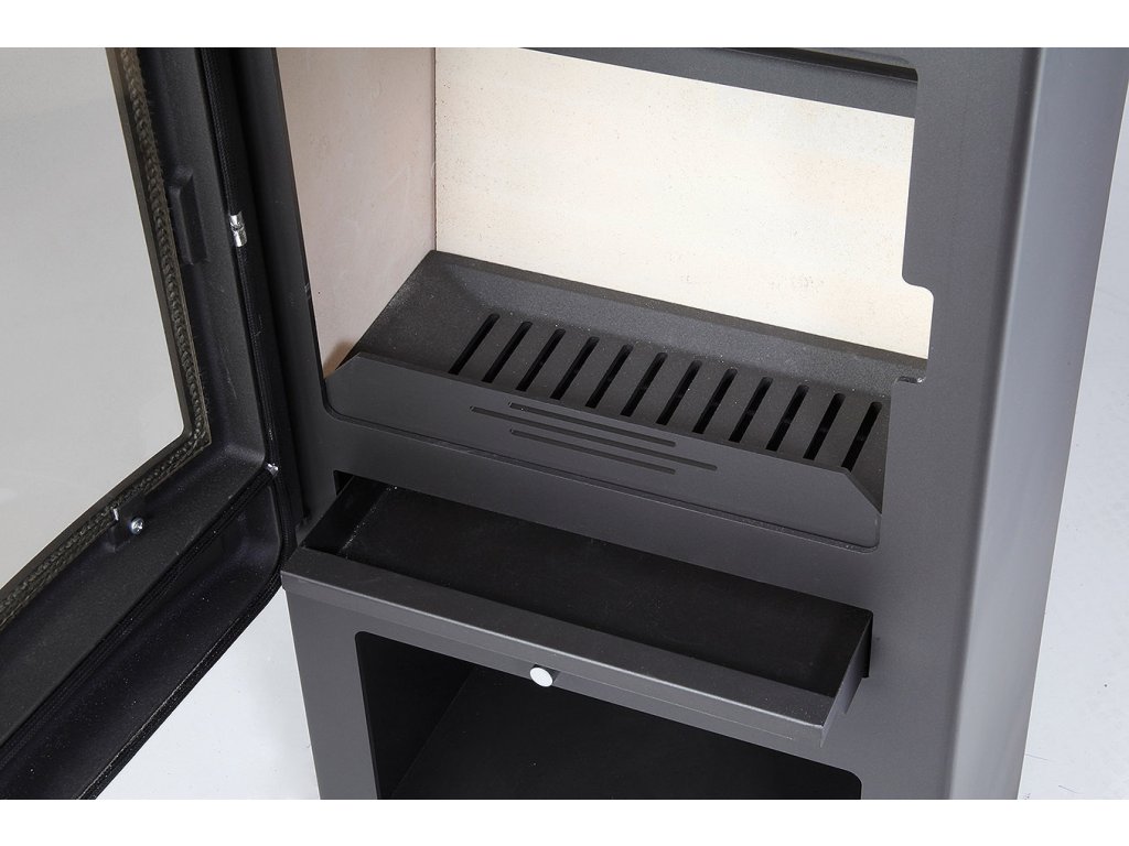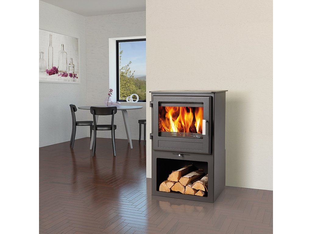 Uchvátia vás pevné liatinové dvierka so špeciálnym veľkoplošným sklom, ktoré je schopné odolávať teplotám až 800°C, a ktoré zaručuje nádherný zážitok z pohľadu na plápolajúci oheň. Iste oceníte aj priestranný a praktický box na uloženie dreva.