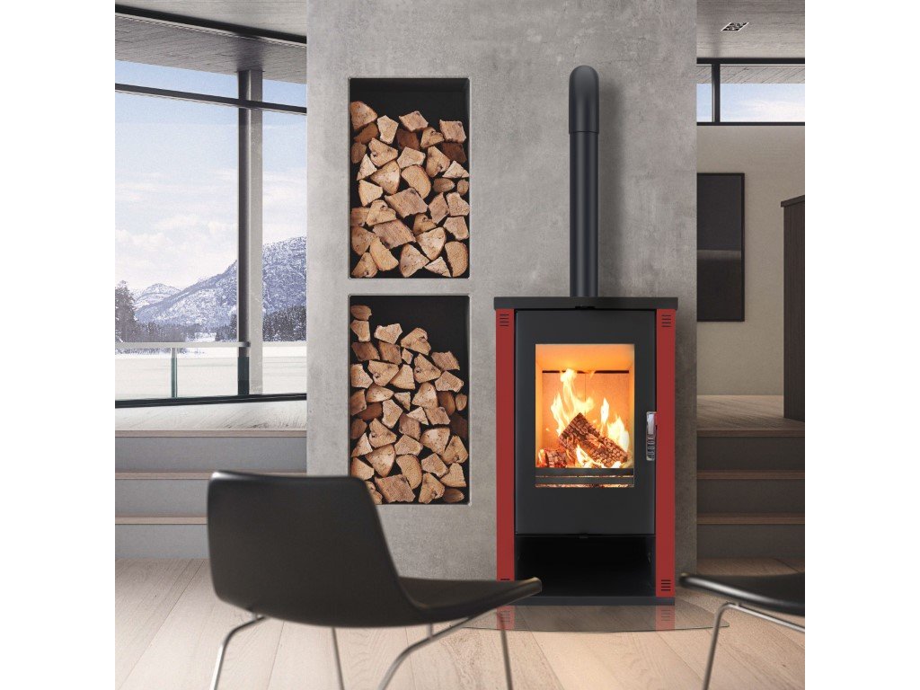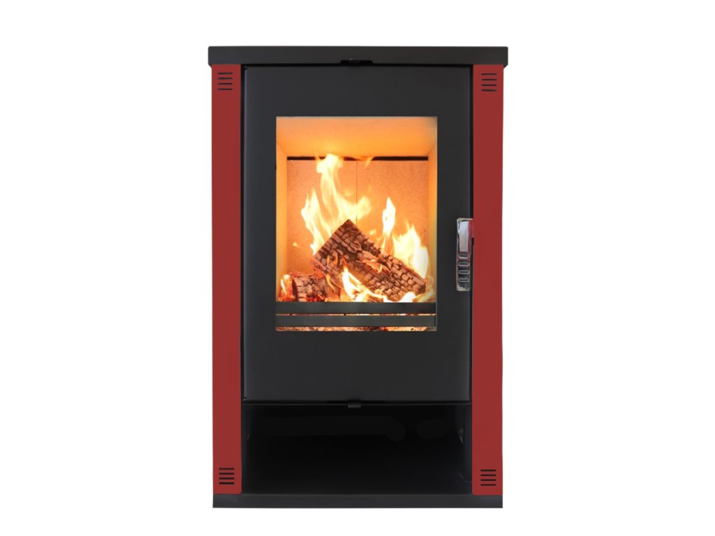 Moderné krbové kachle VERSO Theia v červenej farbe, sú zaručenou voľbou pre všetkých, ktorí očakávajú vysoký výkon, kvalitné prevedenie a priaznivé ceny. Kachle spájajú tradičný obdĺžnikový tvar a elegantný dizajn, ktorý zapadne do každého interiéru.
