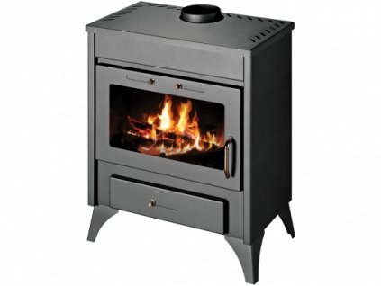 Krbové kachle Amos s výkonom 9 kW v sivej farbe. Vykurovacia schopnosť až 240 m3, horný vývod dymovodu, priemer vývodu 150 mm. Kachle sú vyrobené z plechu s hrúbkou 3 a 5 mm.