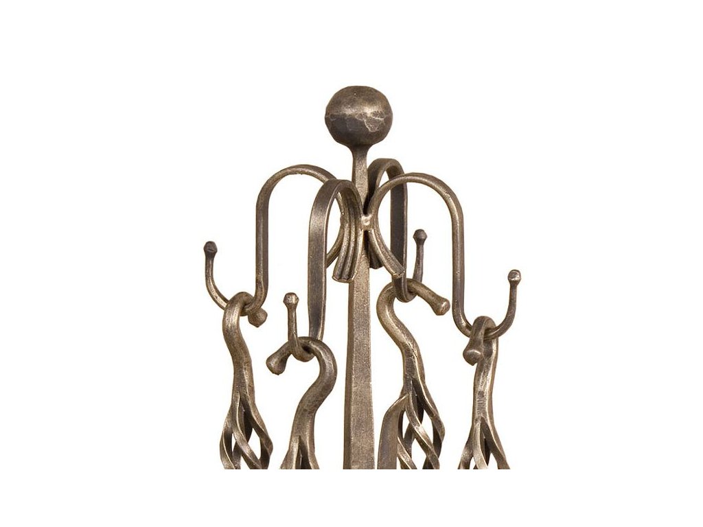 Praktická sada krbového náradia je určená na čistenie krbu alebo kachlí, ktorá zároveň svojím dizajnom oživí priestor. Sada obsahuje okrem zmetáku a lopatky i kutáč a kliešte, pričom všetky nástroje sú zavesené na praktickom a štýlovom stojane.