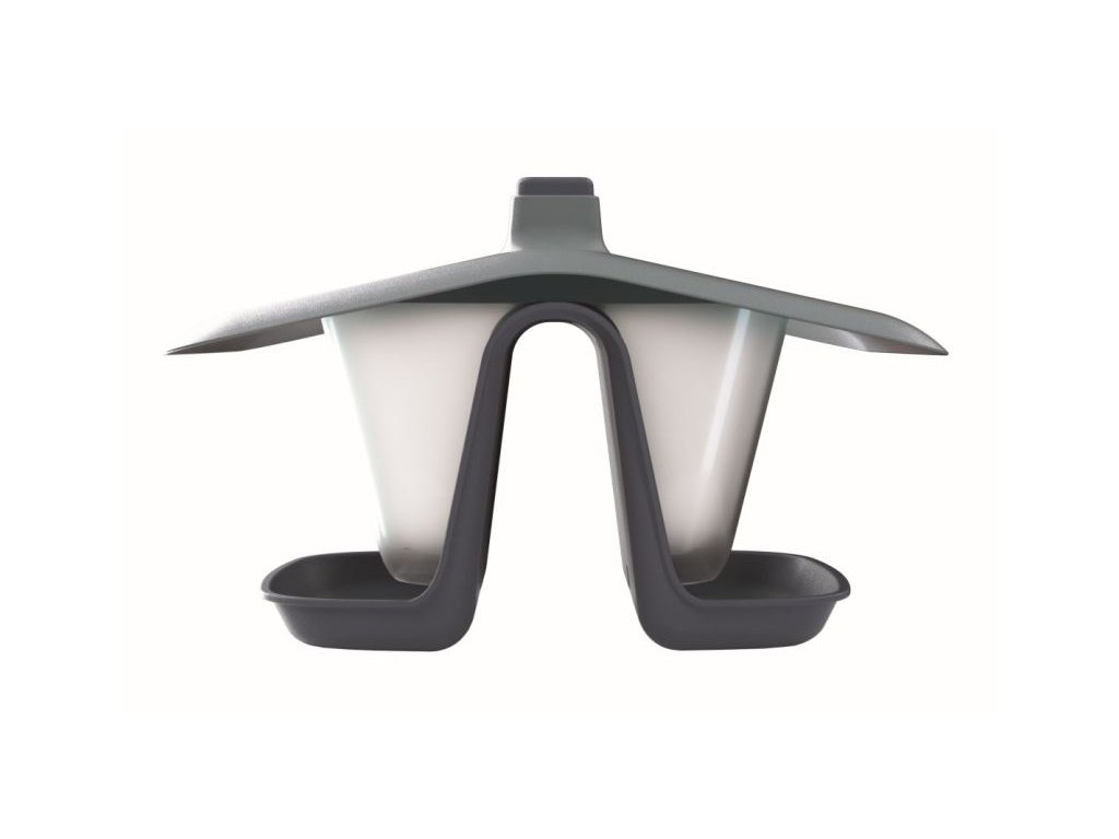 Kŕmidlo pre vtáky je vyrobené z veľmi odolného plastu. Nádoby na obilie sú priehľadné, máte tak vždy prehľad o nutnosti pridať krmivo. Základňa je vo farbe sivého kameňa a strieška potom v antracitovej farbe. Kŕmidlo má po celom obvode priestrannú pristávaciu plochu a veľké nádoby na zrno rôznych veľkostí. Šikmá strecha chráni a udržiava kŕmnu zmes v suchu, čistote a bezpečí proti poveternostným vplyvom. Kŕmidlo má odnímateľnou strechu a tak sa zrno ľahko dopĺňa a veľmi jednoducho sa čistí.