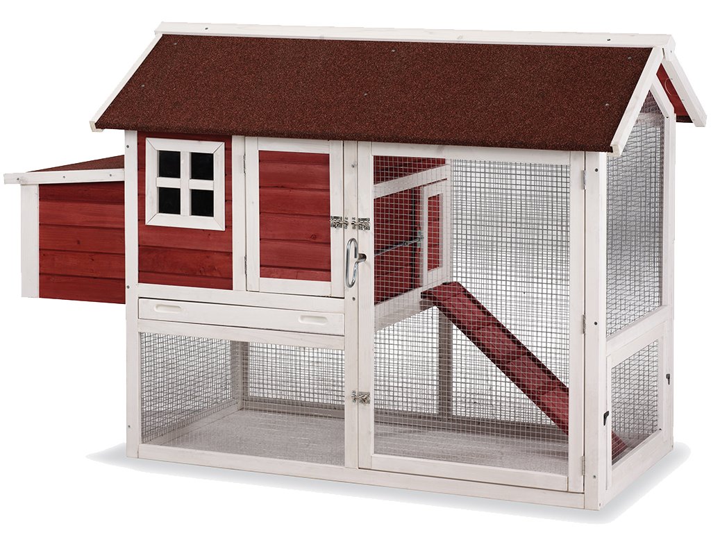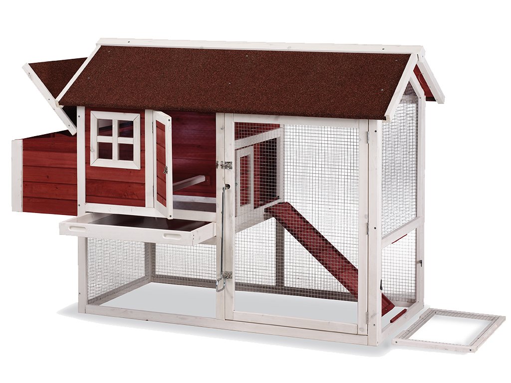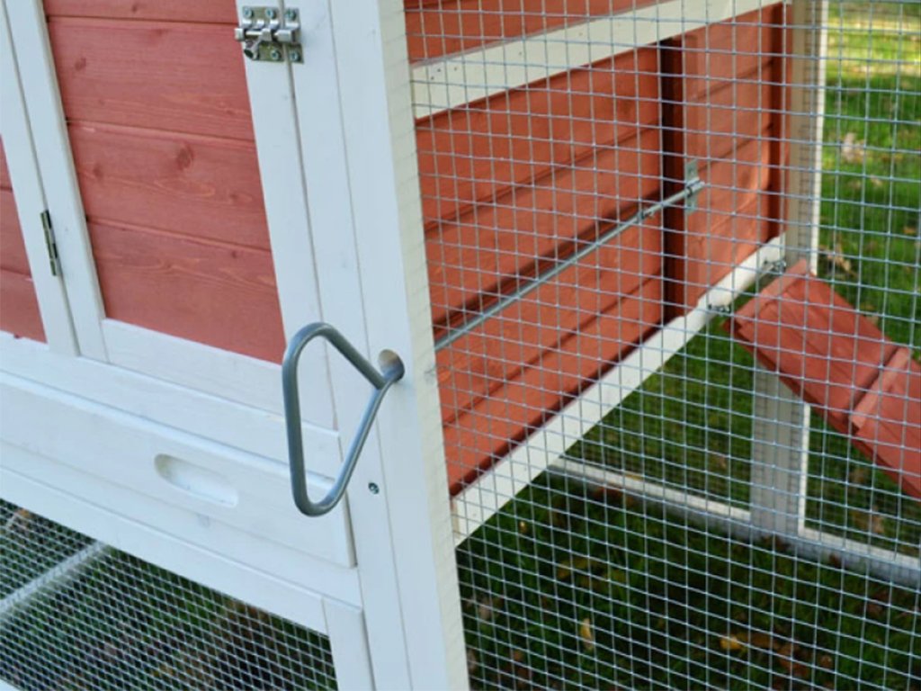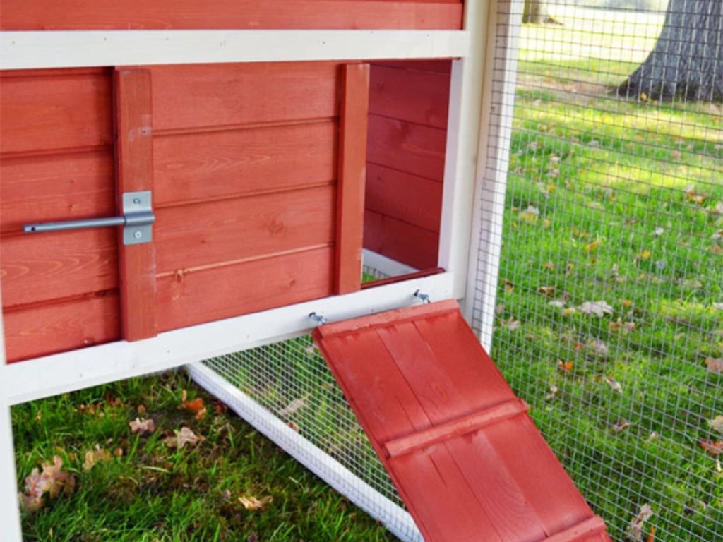 Pre ľahký prístup je kurník vybavený hneď dvojicou dvierok. Jedny dvierka sú umiestnené z prednej strany kurníka, druhý vstup je z bočnej strany, otvorený, s protišmykovou rampou. Väčšie dvojdvierka slúžia pre jednoduchú výmenu vody, krmiva a dobrú dostupnosť do kurníka pri čistení. Samotný výbeh je vybavený dvierkami pre váš ľahký prístup na výmenu krmiva a vody. Čistenie kurníka zvládnete hravo behom chvíľky vďaka vysúvateľnému trusníku. Tiež čistenie znáškového hniezda nebude problém, vďaka výklopnej strieške.