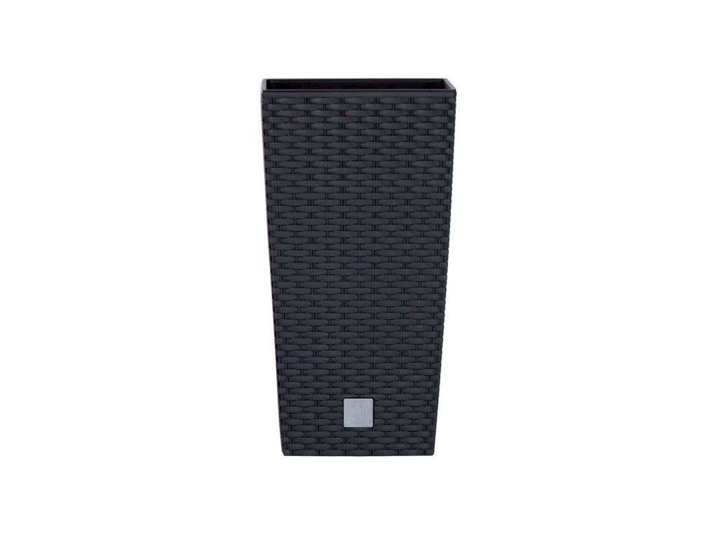 Plastový kvetináč RATO SQUARE s textúrou imitujúcou ratanový úplet bude ozdobou vašej záhrady, terasy, balkóna, ale svoje miesto si nájde aj v interiéri. Súčasťou je aj vyberateľný črepník. Rozmery kvetináča sú (d x š x v): 32,5 x 32,5 x 61 cm. Farba: antracit.