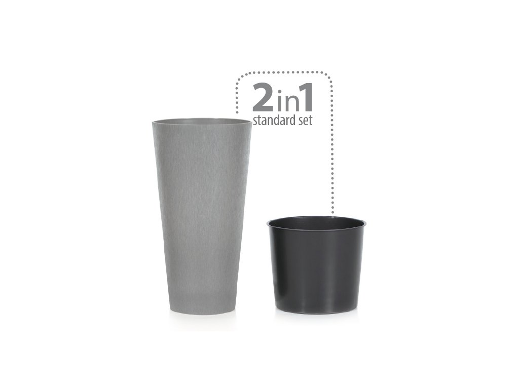 Kvetináč TUBUS je vyrobený z vysoko kvalitného umývateľného materiálu s betónovým vzhľadom. Materiál odolá mrazu aj poveternostným vplyvom. Súčasťou kvetináča je plastová čierna vložka, ktorá slúži na pestovanie rastlín.