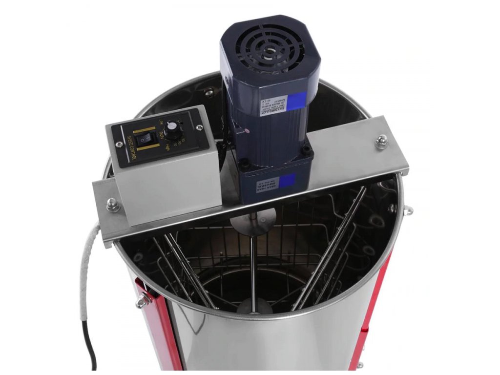 Medomet je veľmi univerzálny a vhodný pre rámčeky s rozmermi 39 x 24 cm a menšími. Je vybavený jednofázovým elektrickým motorom s výkonom 140 W, napájaním na 230 V a s poistkou v prípade, že medomet otvoríte. Rýchlosť otáčania je plynulo nastaviteľná, čo umožňuje prispôsobiť otáčky od veľmi pomalých, vhodných pre ťažké plásty plné medu, až po najrýchlejšie, ideálne na dokončenie odstreďovania. Kôš je navrhnutý na 3 rámčeky s rozmermi 39 x 24 cm.