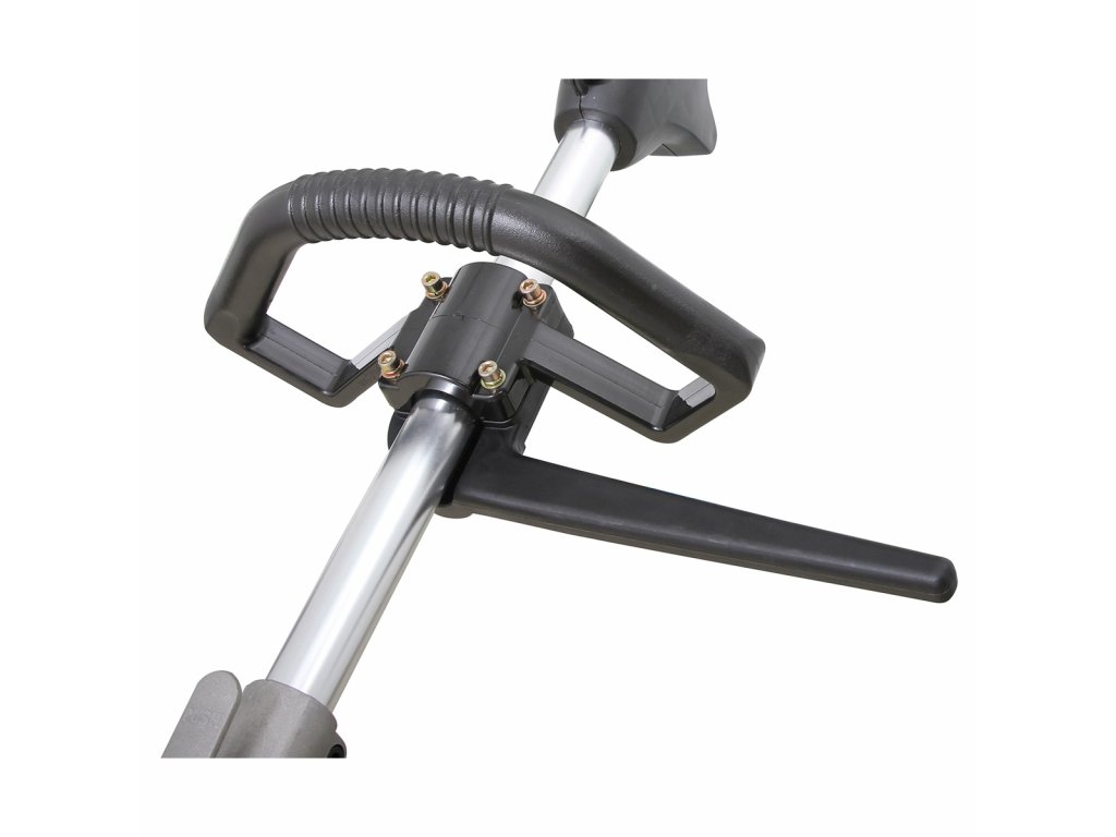 Materiál vodiacej tyče aj delený hriadeľ sú vyrobené z kvalitnej zliatiny kovov. Vďaka delenému hriadeľu je možné rozložiť krovinorez na dve polovice – úspora miesta pri skladovaní a jednoduchší transport v automobile. Pohodlná rukoväť dovoľuje viac možností uchopenia stroja pre prácu v rôznych polohách as rôznymi nástavcami. Rukoväť je možné nastaviť bez použitia náradia. Komfortný dvojitý popruh na rameno umožňuje pohodlné nastavenie podľa výšky používateľa.