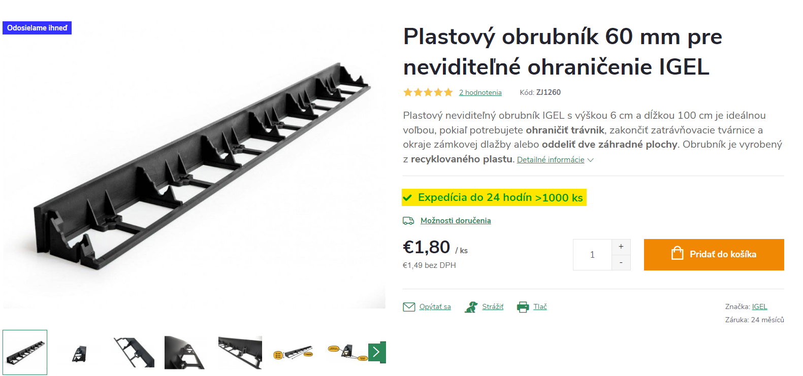 Dodacie lehoty uvádzame transparentne priamo pri tovare (viď obrázok nižšie). Pokiaľ máte v objednávke viac tovaru s rôznymi termínmi dodania, bude sa dodanie odvíjať od položky s najdlhším termínom dodania.