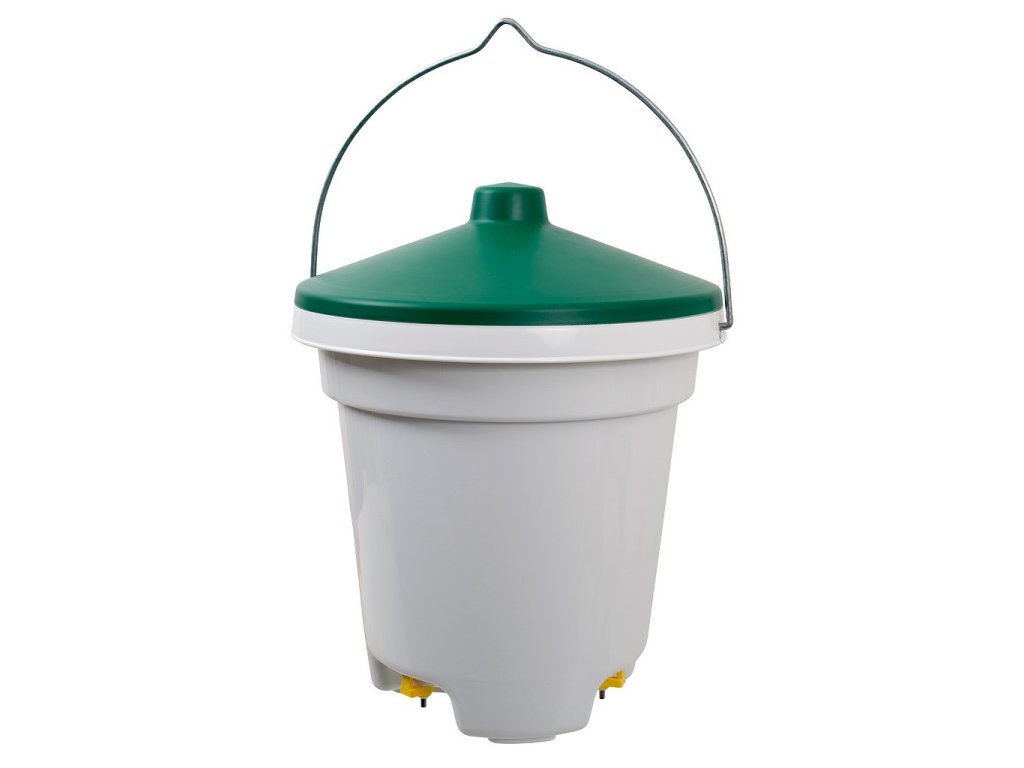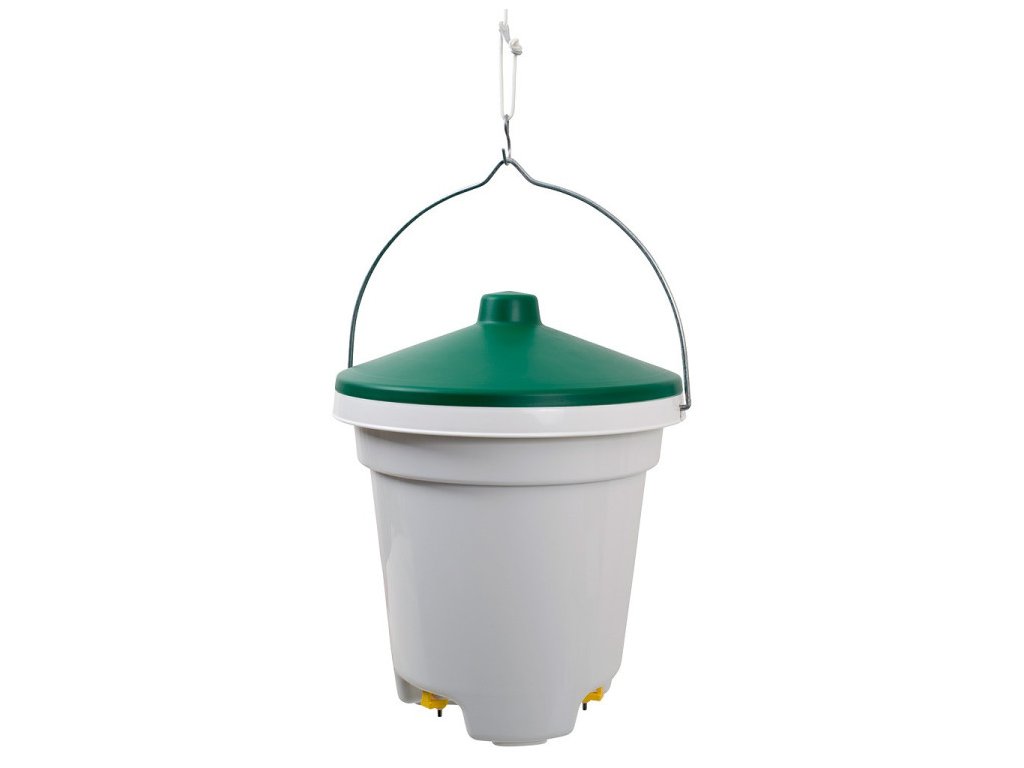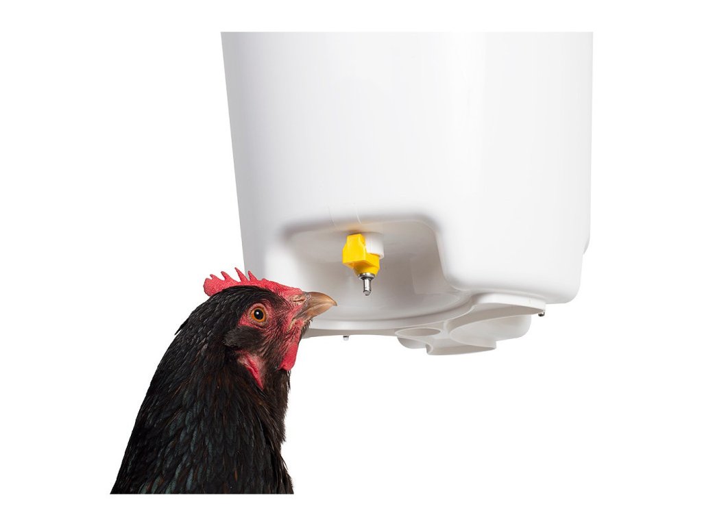 Napájacie vedro vhodné pre sliepky, kačice a inú hydinu. Na spodnej strane vedra sa nachádzajú 3 napájacie nipľy, ktoré uvoľňujú vodu pri stlačení zobákom. Hygienické a praktické! Vhodné na zavesenie – vrátane montážnej sady. Nipľy sú vybavené filtrami, ktoré zabraňujú upchatiu nečistotami.