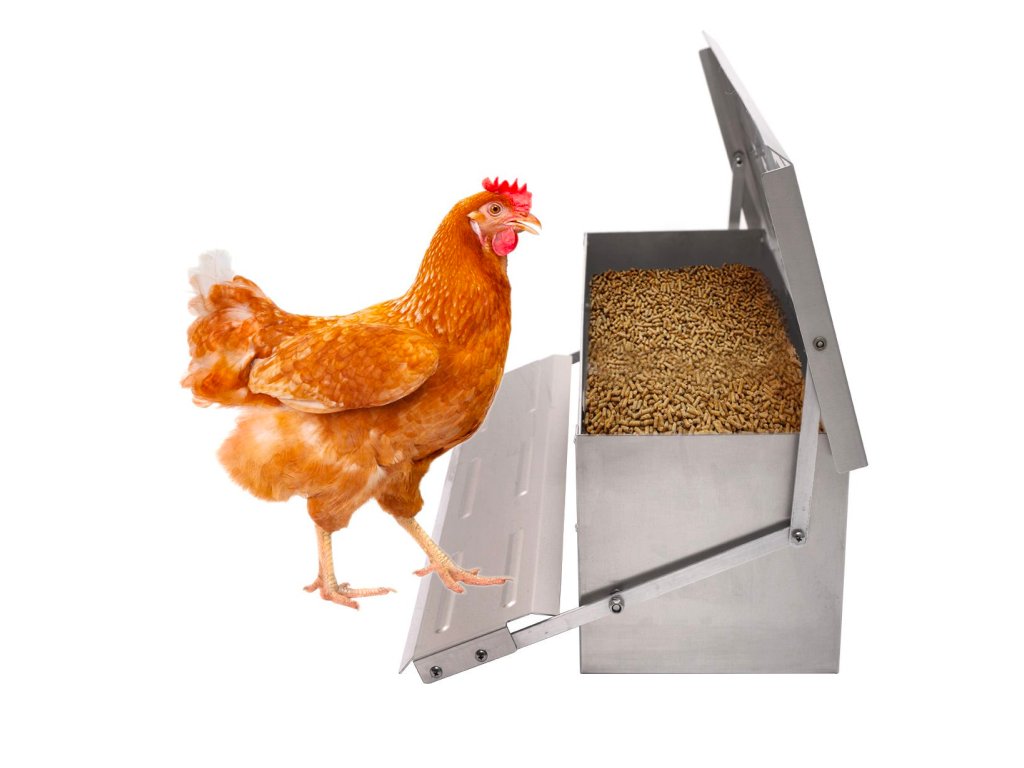 Kŕmidlo je vybavené dvierkami, ktoré sa automaticky otvoria, keď sliepka na kŕmidlo stúpi. Krmivo je tak prístupné len vašim sliepkam a zostáva chránené pred vonkajšími vplyvmi.
