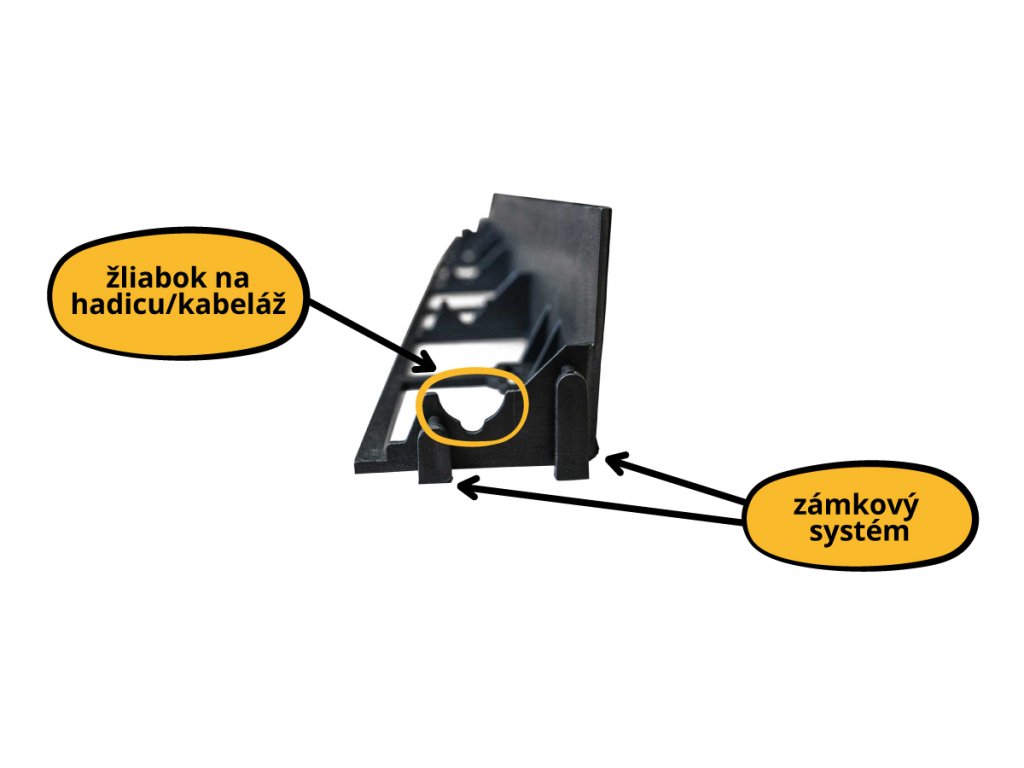 Obrubník má pozdĺž celej dĺžky vytvorený žliabok na umiestnenie záhradnej hadice či kabeláže, ktorá sa vám vďaka tomu nekrúti a vy viete, kadiaľ presne ju v zemi na svojej záhrade vediete.