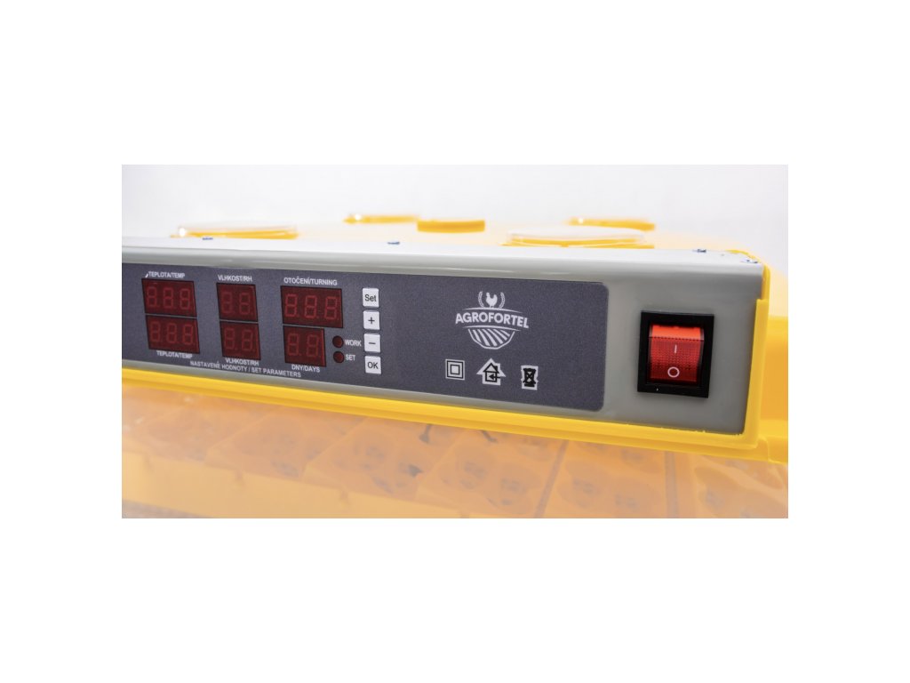 Predstavujeme vám liaheň pre 98 ks slepačích alebo morčacích vajec. Jedná sa o plne automatickú liaheň a inkubátor. Vajcia v liahni sa každé dve hodiny otočia. Tento interval možno zmeniť v nastaveniach. Pomocou tlačidiel je možné jednoducho nastaviť teplotu, ktorú vám bude liaheň držať. Na displeji možno sledovať teplotu, vlhkosť a počet dní od zapnutia liahne. Kapacita liahne je 98 ks slepačích alebo morčacích vajec (vajcia s priemerom 20-40 mm). Vajcia sa otočia automaticky každé dve hodiny (frekvenciu je možné upraviť podľa potreby). Liaheň má digitálny displej, na ktorom je možné nastaviť teplotu od 20 °C do 40 °C po 0,1 °C. Otvory na vrchu umožňuje plnú kontrolu nad liahnutím. Voda sa do liahne dolieva zvonku. Automatická regulácia vlhkosti - nastavíte si napr. vlhkosť 65% a integrovaný zvlhčovač vám pomôže v udržaní stálej vlhkosti. 3 dni pred koncom liahnutia je možné vybrať plastové držiaky a vajíčka uložiť na plastovú podlahu k doliahnutiu. Liaheň teda skvele funguje aj ako doliaheň.