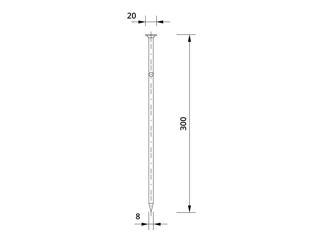 - rozmer: 300 x 8 mm, priemer hlavičky 20 mm