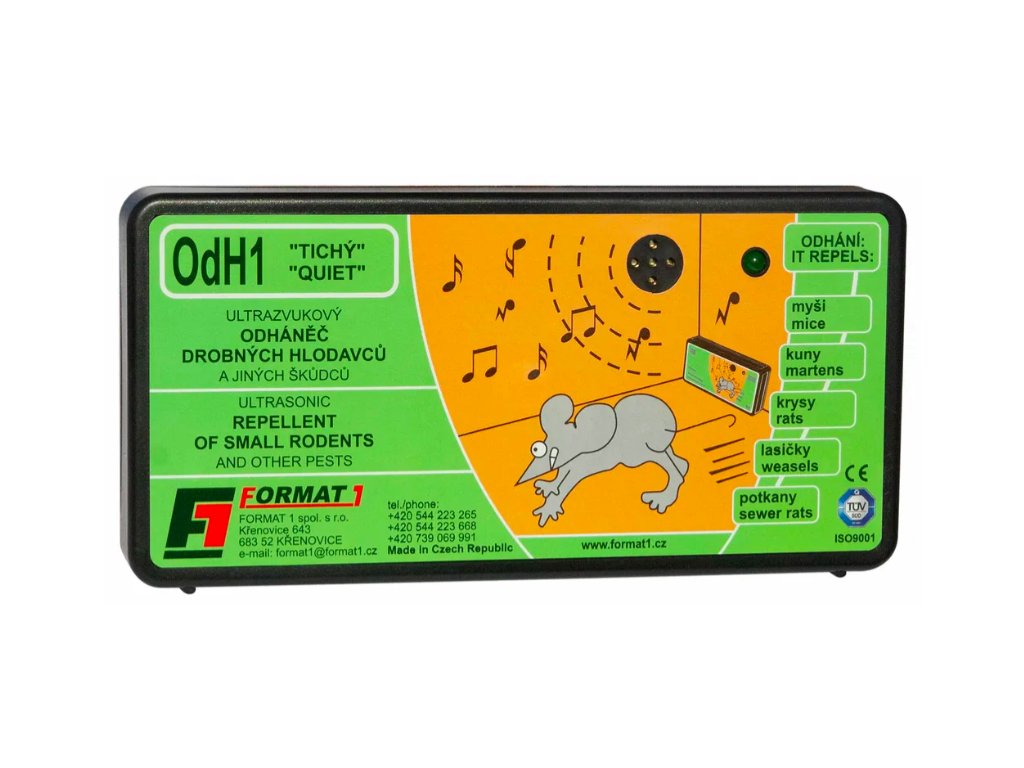 ODH1 tichý plašič je kvalitný český ultrazvukový plašič určený na odpudzovanie myší, potkanov, kún, lasíc a krýs. Využíva bezpečnú a humánnu technológiu bez chémie – neškodí človeku ani domácim zvieratám a možno ho bez obáv používať aj v obytných priestoroch.