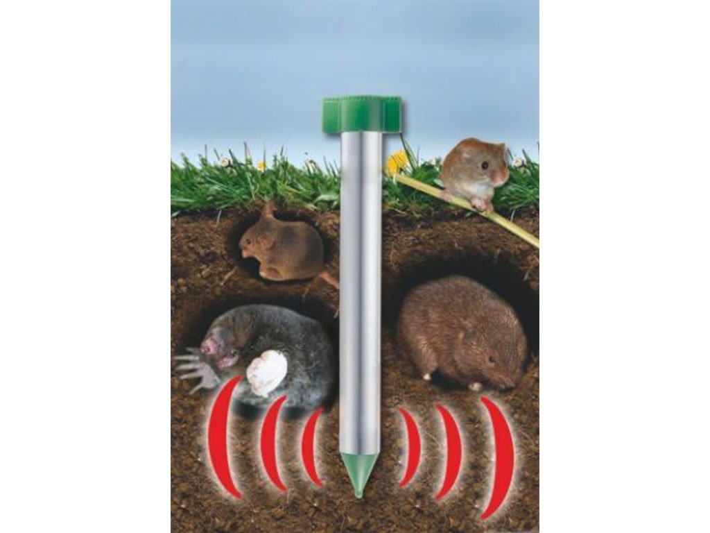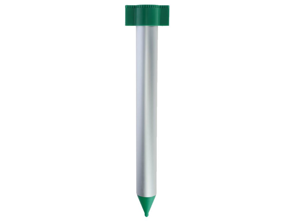 Vodotesný odpudzovač na krtov a hraboše s napájaním na 4x LR20 batérie. Vibračný zvuk vo vnútri tyče pracuje v 30 sekundových intervaloch. Dosah zariadenia je približne 30 m s účinnou plochou až 650 m². Rozmery prístroja sú 41,5 cm dĺžka a priemer 8 cm.