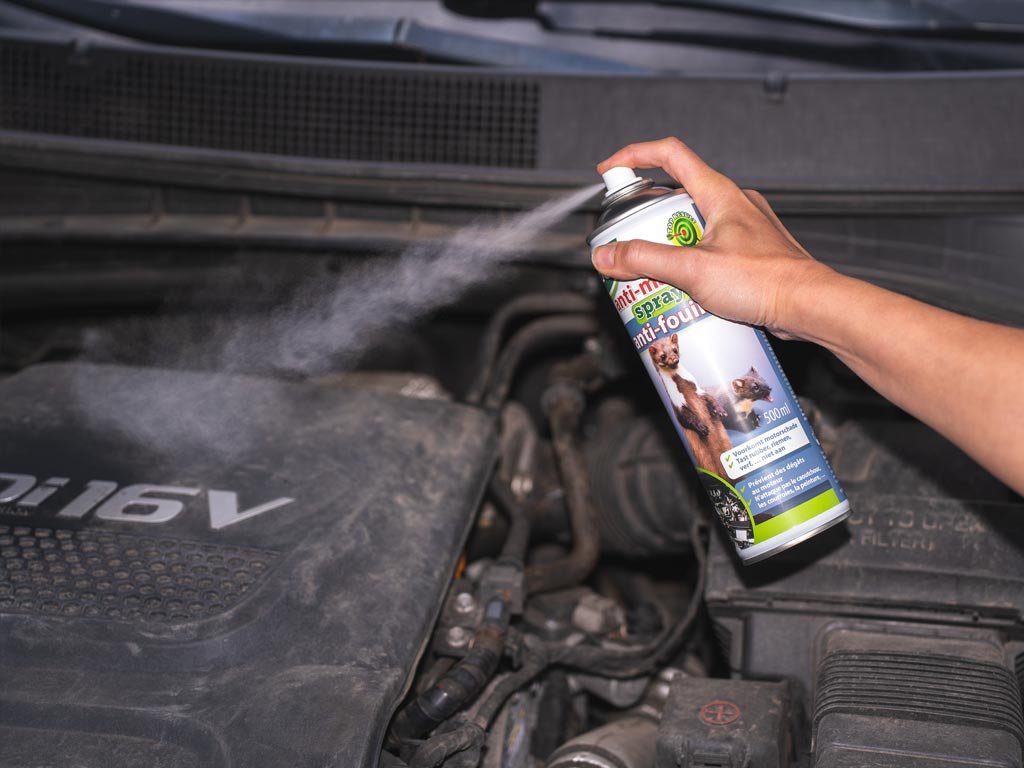 Pred použitím pretrepte a aplikujte zo vzdialenosti cca 20–30 cm na čistý a suchý povrch, ktorý chcete chrániť. Zamerajte sa na miesta s častým výskytom kún (káble, motor, vstupy do pôdy a pod.).