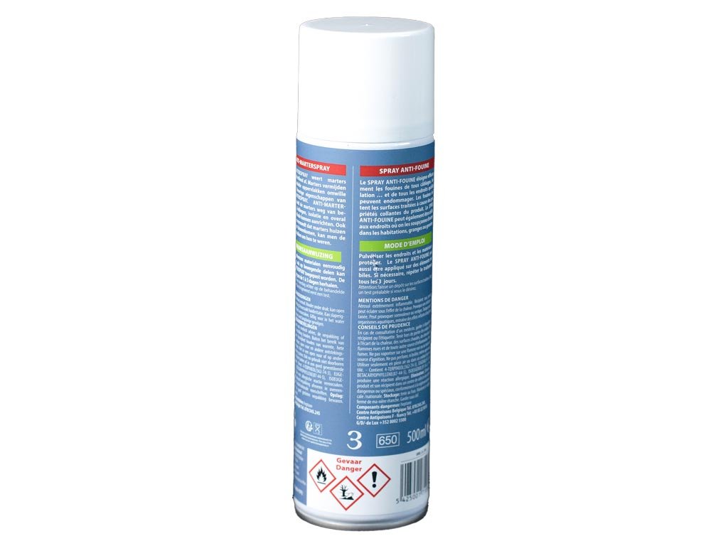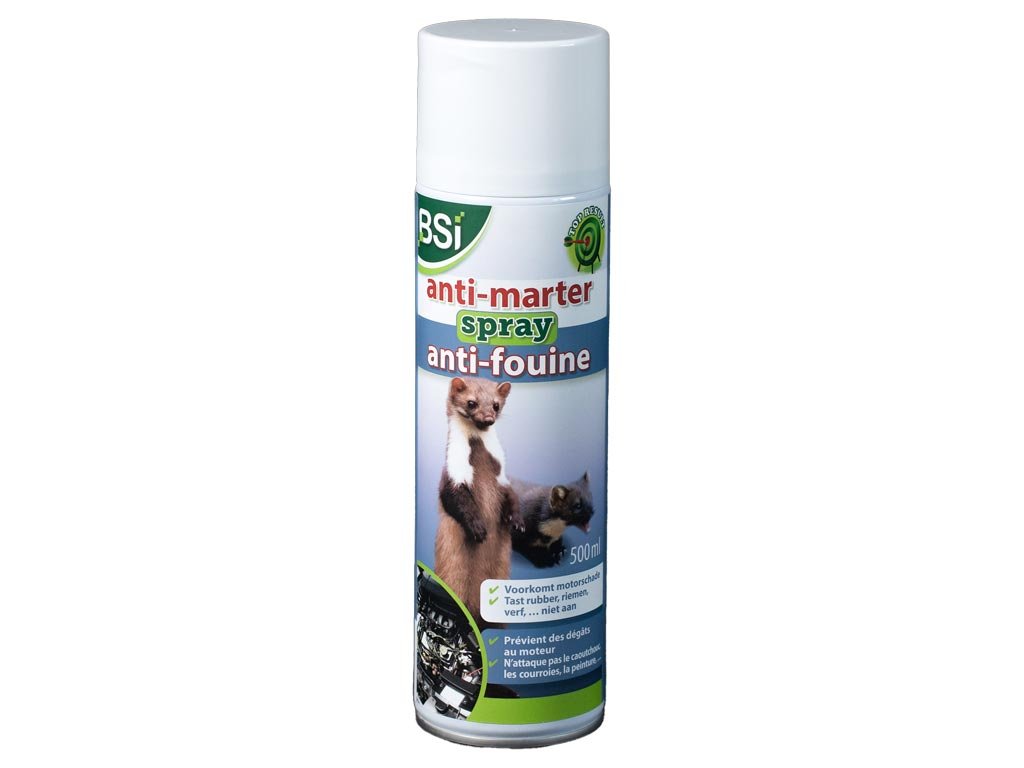 BSI Anti Marten Spray 500 ml chráni domy a vozidlá pred kunami. Je to rýchlo pôsobiaci sprej, ktorý kuny odpudzuje. Prípravok použite na ošetrenie miest, kde predpokladáte, že kuny môžu spôsobiť škody, napríklad na izolačnom materiáli, elektroinštalácii alebo potrubí. Ošetrenie opakujte každý jeden až tri dni, aby ste kuny nadobro vyhnali.