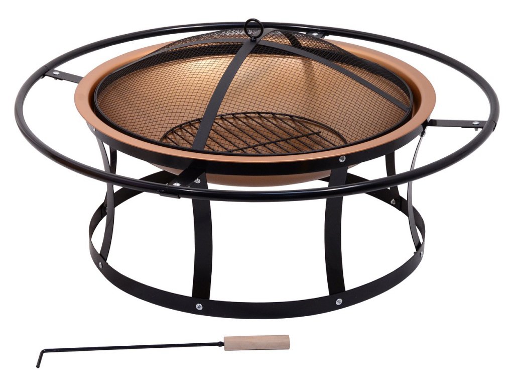 Špeciálne tvarovaný poklop s pletivom poslúži ako ochrana pred iskrami, čo výrazne zvyšuje bezpečnosť a pohodlie. Priložený je aj kovový kutáč s drevenou rukoväťou, ktorý je možné použiť ako na urovnanie ohňa, tak aj na ľahké zloženie poklopu.