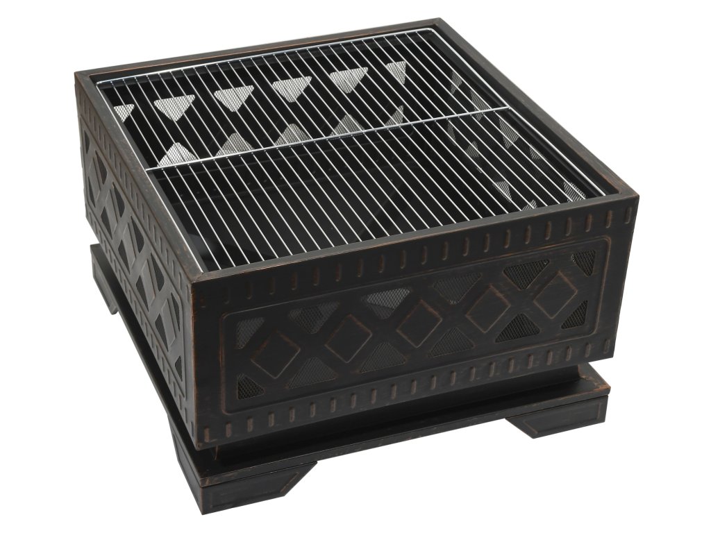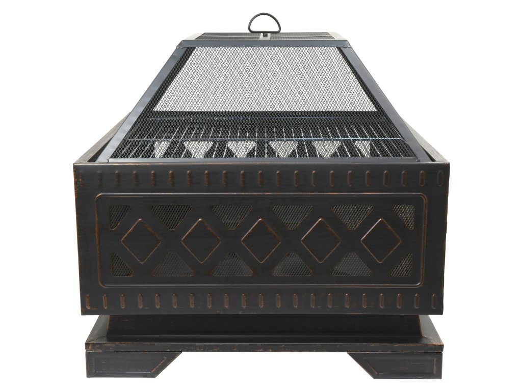 Konštrukcia ohniska je vyrobená z kvalitnej ocele s vysokoteplotným čiernym/medeným náterom s patinou. Na grilovanie je ohnisko vybavené oceľovým roštom priemeru 61 cm. Ohnisko je veľmi stabilné a jeho výnimočný vzhľad skrášli každú záhradu. Ohnisko je skrátka dekoratívnym prvkom v záhrade, na dvore či terase, nezáleží na tom, či s plameňom alebo bez.