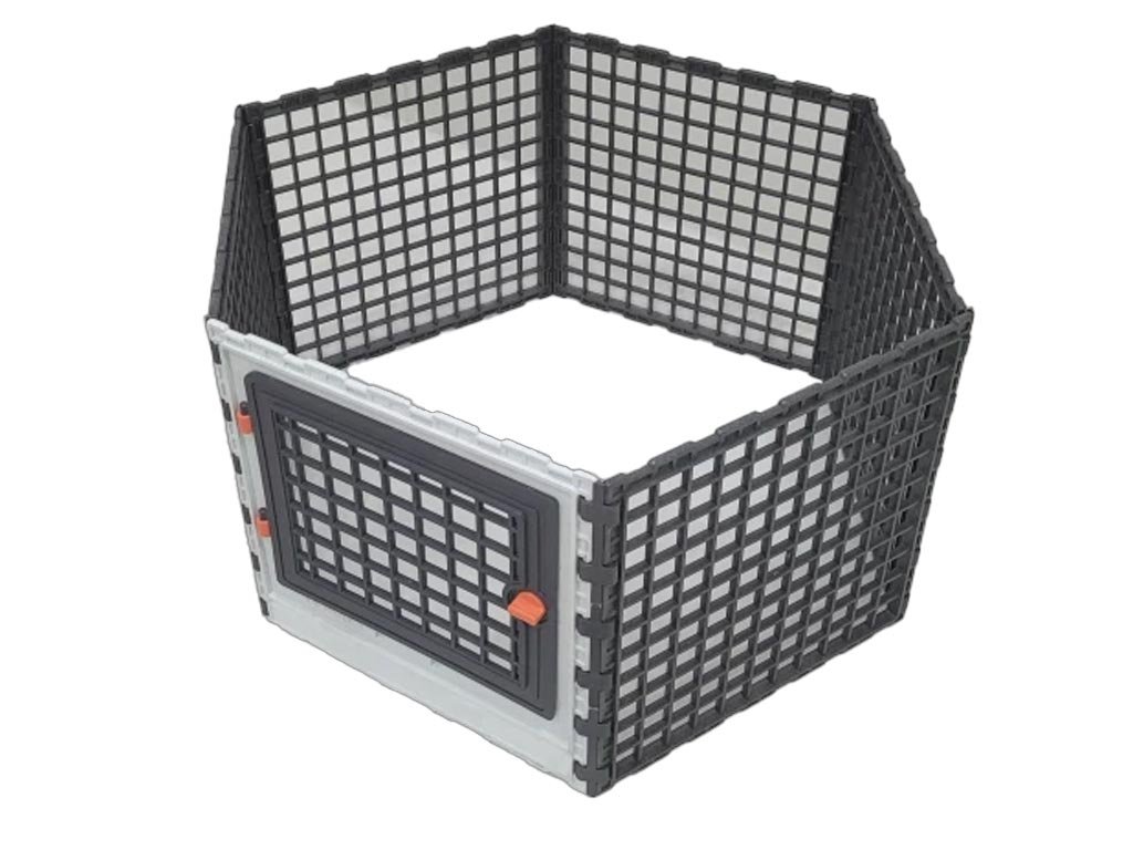 - Jednoduchá montáž: Diely sú vybavené skladacími pántmi a klipsami, ktoré umožňujú rýchlu a jednoduchú montáž bez potreby náradia. Ohrádka je pripravená na použitie za pár minút.