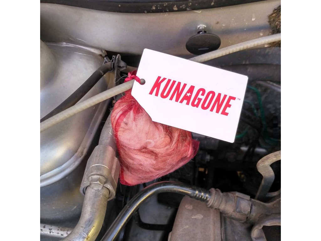 Odpudzuje zvieratá a chráni elektrický systém vášho vozidla. Tento prírodný repelent možno použiť aj na povalách a v ďalších priestoroch, kde je prítomnosť kún a voľne žijúcich zvierat nežiaduca. Kunagone by nemal byť umiestnený príliš blízko pohyblivých alebo horúcich častí motora. Na ochranu podkrovia umiestnite do priestoru zodpovedajúci počet jednotiek podľa rozlohy miestnosti.