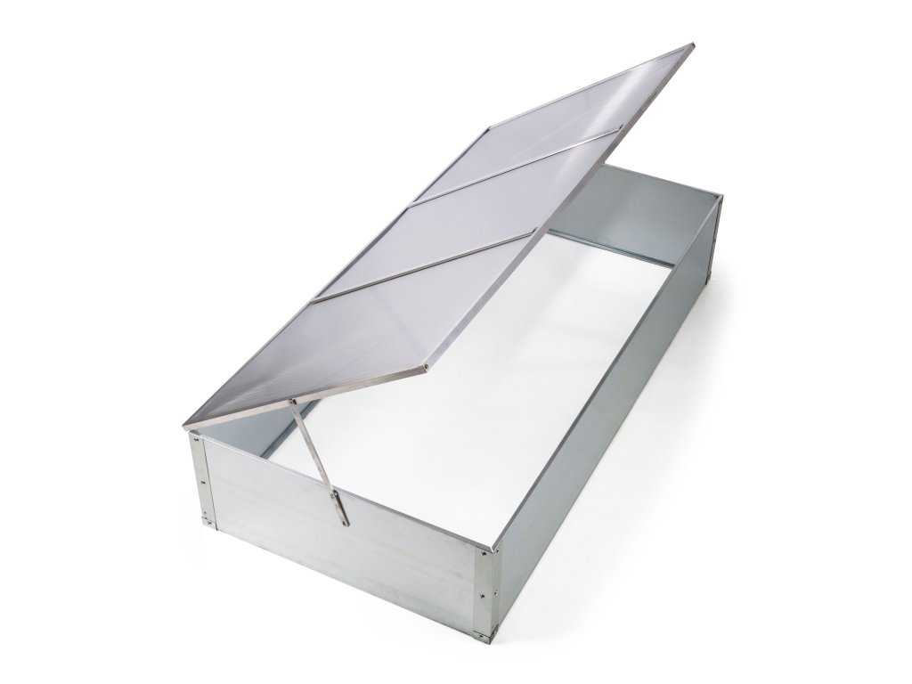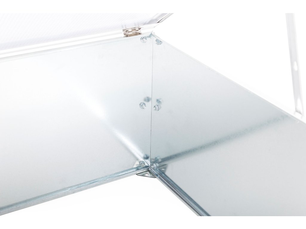 Horný alumíniový rám s výplňou z kvalitného 4 mm polykarbonátu vám pri sadbe a starostlivosti o zasadené rastliny umožní pohodlný prístup vďaka variabilnému nastaveniu v požadovanej polohe.