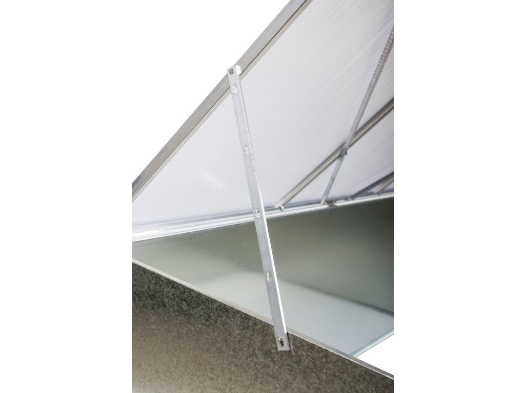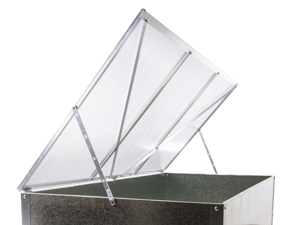Horný alumíniový rám s výplňou z kvalitného 4 mm polykarbonátu vám pri sadbe a starostlivosti o zasadené rastliny umožní pohodlný prístup vďaka variabilnému nastaveniu v požadovanej polohe.