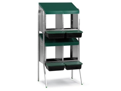 Znáškové hniezdo pre sliepky so zberným košíkom na vajcia, štvormiestne, až pre 20 nosníc, na nožičkách, určené na umiestnenie na zem, s jednoduchou údržbou. Ide o skvelého...