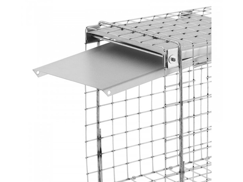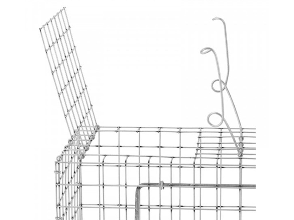 Stredne veľká kvalitná pozinkovaná pasca s ochranou proti korózii, s jedným vstupom k umiestnenej nástrahe a s uzatváracím systémom most, s veľmi pevnou konštrukciou, hrúbka drôtu 1,8 mm.