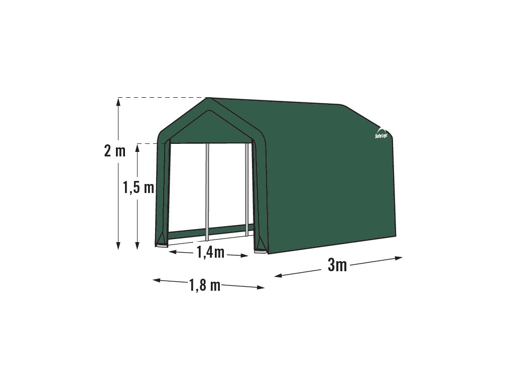 Veľmi kvalitný a pevný plachtový prístrešok SHELTERLOGIC 70471eu 1,8 x 3 m je ideálny k sezónnemu uskladneniu záhradkárskych, športových a motoristických potrieb či k uskladneniu dreva. Plachtový prístrešok je široký 180 cm (predná strana so vstupným otvorom) a 300 cm dlhá. Zastavaná plocha činí 5,4 m2.