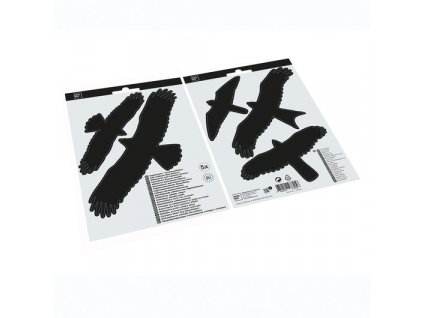 Antikolízne nálepky SwissInno s obrázkami vtákov sú odolné voči UV žiareniu a slúžia na udržanie vtákov v odstupe od veľkých sklenených plôch, aby sa predišlo ich zraneniu.
