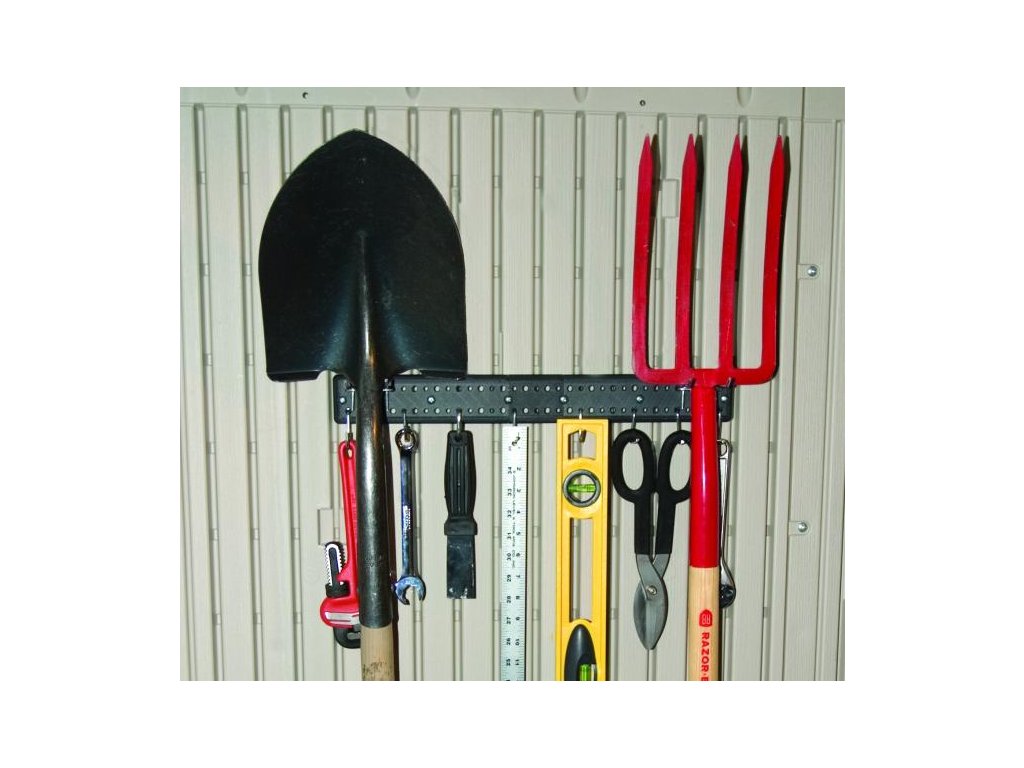- 2 x upevňovacia kovová lišta na záhradné náradie