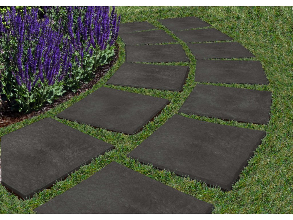 Záhradná dlaždica STOMP STONE v elegantnom dizajne, v antracitovej farbe. Nášľap je vyrobený z gumového recyklátu a vďaka tomu je odolný, ľahko umývateľný a vydrží zmeny počasia. Je možné ho umiestniť na akýkoľvek podklad. Rozmery sú 30 x 30 cm.