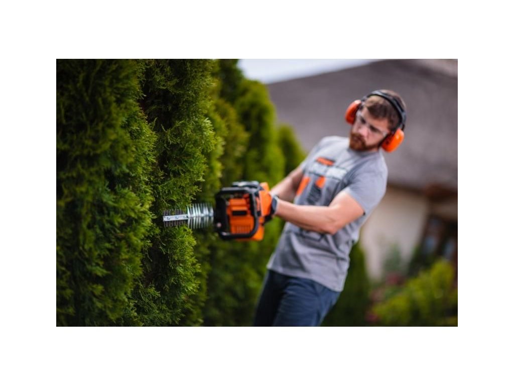 Profesionálna dvojitá, protibežná žacia lišta v reznej dĺžke 60 cm, vám dovolí upraviť porasty až do priemeru 20 mm. Otočná zadná rukoväť je vybavená predĺženou spúšťou a vybavená pogumovaním pre pohodlné strihanie pod akýmkoľvek uhlom. Samozrejmosťou sú bezpečnostné prvky, ako dvojručné ovládanie, elektrická brzda, ochranný štít, ktorý zaručí vašu bezpečnosť pri manipulácii s plotostrihom.