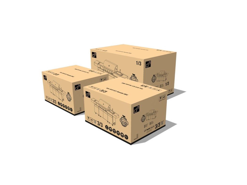 Plynový gril G21 Nevada BBQ je posielaný v 3 krabiciach v rozmeroch: