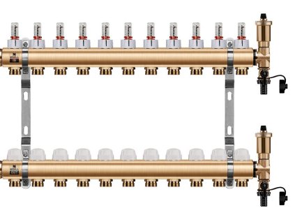 PROFI mosadzný rozdeľovač s 11 okruhmi a manuálnym odvzdušňovačom je určený pre podlahové vykurovanie. Všetky rozdeľovače majú vykonanú tlakovú skúšku. Súčasťou rozdeľovača sú...