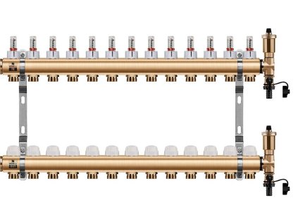 PROFI mosadzný rozdeľovač s 13 okruhmi a manuálnym odvzdušňovačom je určený pre podlahové vykurovanie. Všetky rozdeľovače majú vykonanú tlakovú skúšku. Súčasťou rozdeľovača sú...