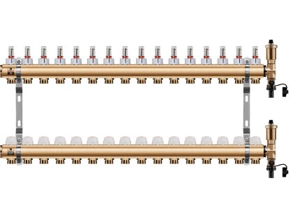 PROFI mosadzný rozdeľovač so 16 okruhmi a manuálnym odvzdušňovačom je určený pre podlahové vykurovanie. Všetky rozdeľovače majú vykonanú tlakovú skúšku. Súčasťou rozdeľovača sú...