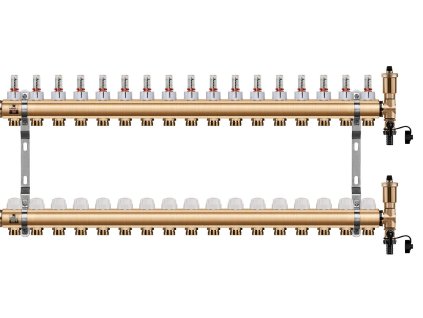 PROFI mosadzný rozdeľovač s 15 okruhmi a manuálnym odvzdušňovačom je určený pre podlahové vykurovanie. Všetky rozdeľovače majú vykonanú tlakovú skúšku. Súčasťou rozdeľovača sú...