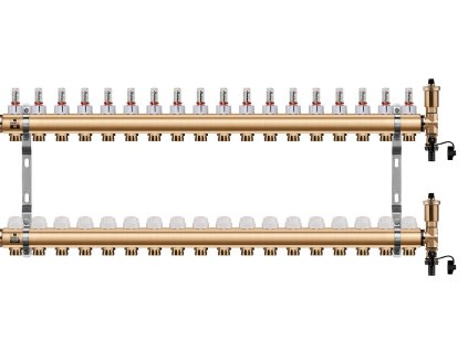 PROFI mosadzný rozdeľovač s 18 okruhmi a manuálnym odvzdušňovačom je určený pre podlahové vykurovanie. Všetky rozdeľovače majú vykonanú tlakovú skúšku. Súčasťou rozdeľovača sú...