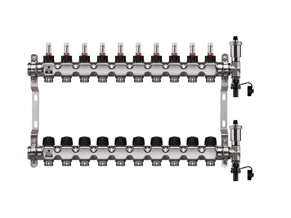 Podlahový rozdeľovač WIGELL, 10 okruhov, nerez + automatické odvzdušňovanie