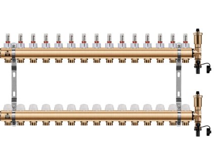 Podlahový rozdeľovač WIGELL, 15 okruhov, mosadzný + odvzdušňovanie na kľúč