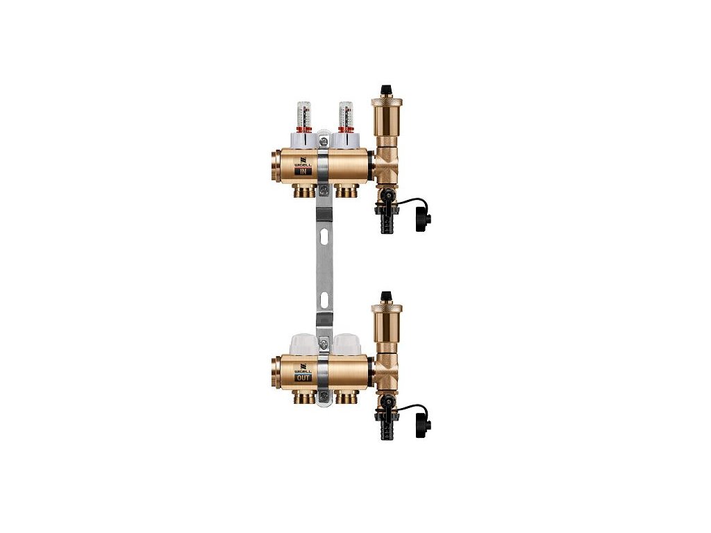 Podlahový rozdeľovač WIGELL, 2 okruhy, mosadzný + automatické odvzdušňovanie
