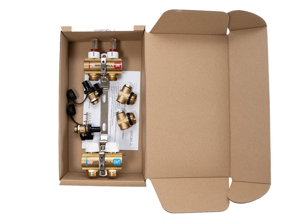 Rozdeľovače Wigell je možné namontovať priamo na stenu alebo pomocou dodaných držiakov do skrine rozdeľovača. Montážna poloha je ľubovoľná. Na tento rozdeľovač môžete pomocou zverného šróbenia pripojiť rúrky PeX-AL-PeX alebo Pe-rt.