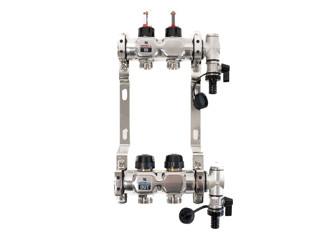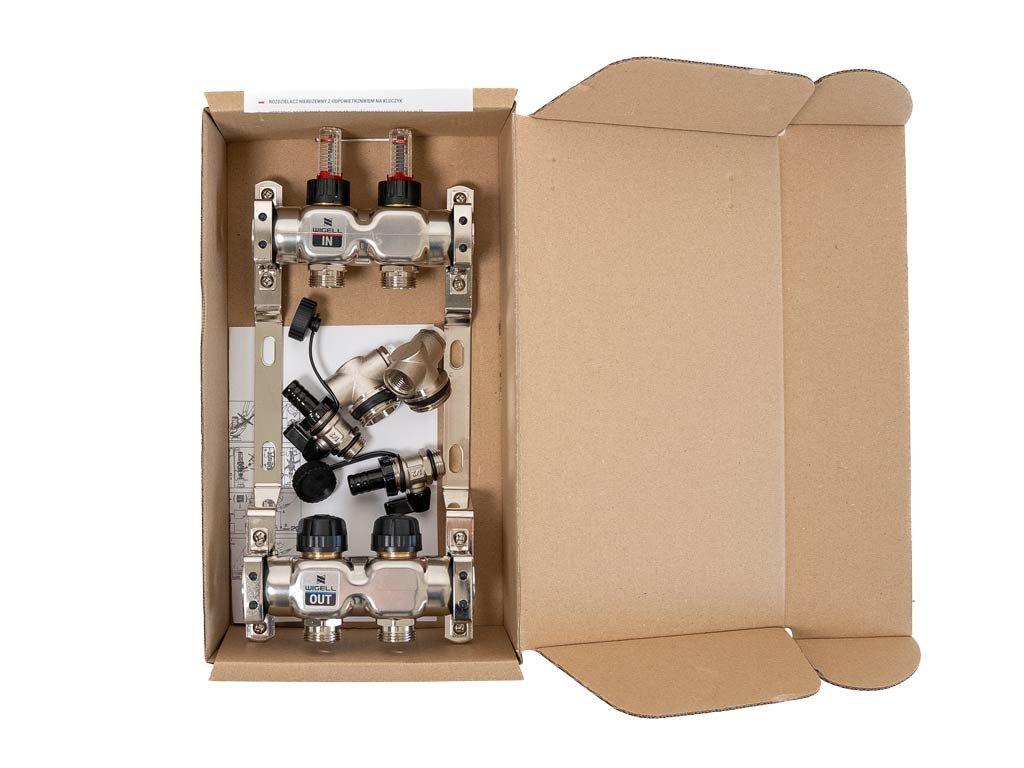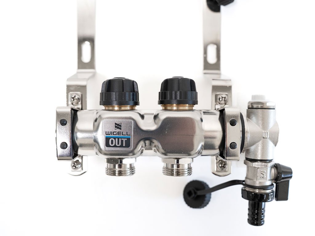 Rozdeľovače Wigell je možné namontovať priamo na stenu alebo pomocou dodaných držiakov do skrine rozdeľovača. Montážna poloha je ľubovoľná. Na tento rozdeľovač môžete pomocou zverného šróbenia pripojiť rúrky PeX-AL-PeX alebo Pe-rt.